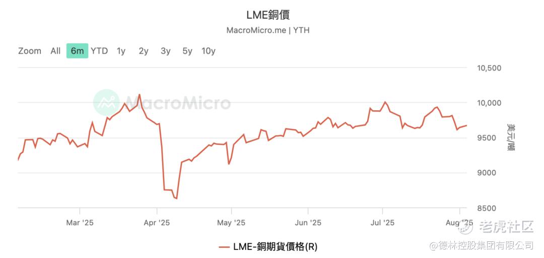 我更感兴趣是,特朗普的铜关税计划宣布后,竟然只有美国的铜期货价格出现了上涨,伦敦铜期货价格、上海的铜期货价格都没有上涨。这个信号说明,美国以外的投资者压根不相信美国增加铜关税会对世界铜价产生什么本质影响。请看下面两幅图,伦敦铜价和上海铜价走势完全一致,根本不受美国铜关税的影响。