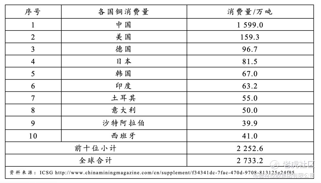 图4:各国铜消费量,信息来源:ICSG