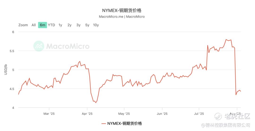 但是7月30日特朗普的新关税政策细节出台后,市场大跌眼镜。原来美国仅对部分铜产品征收关税,直接宣布豁免铜矿石、精矿、阴极铜、阳极铜等产品的关税,于是铜价大跌20%,铜价回归到了上涨之前的水平。