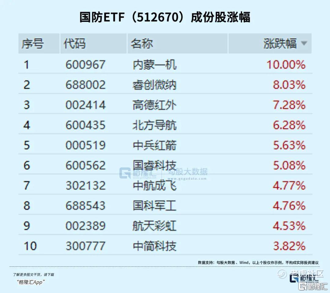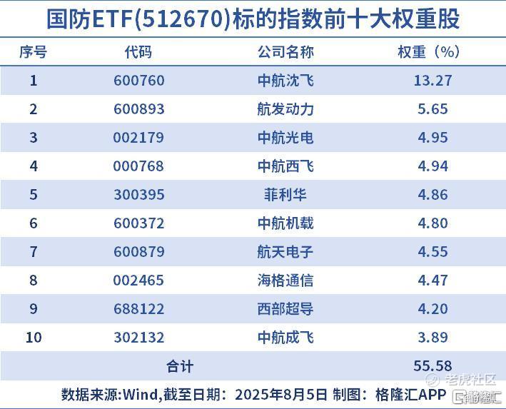 国防ETF(512670)作为独家跟踪中证国防指数的ETF,成分股隶属十大军工集团旗下、以及给军队提供武器装备、或与军方有实际装备承制销售金额或签订合同的相关上市公司,是当之无愧的“军贸重估”纯正标的。前十大重仓股涵盖航空发动机领域的龙头,同时覆盖航空装备、导弹、新材料等细分领域,全面布局军工核心赛道,更充分捕捉军工板块的弹性。 $国防ETF(512670)$
