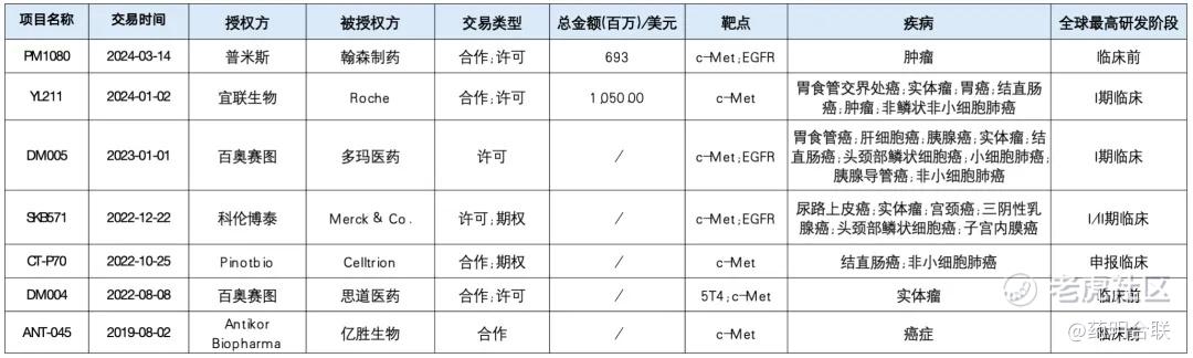 全球c-Met ADC药物BD交易一览