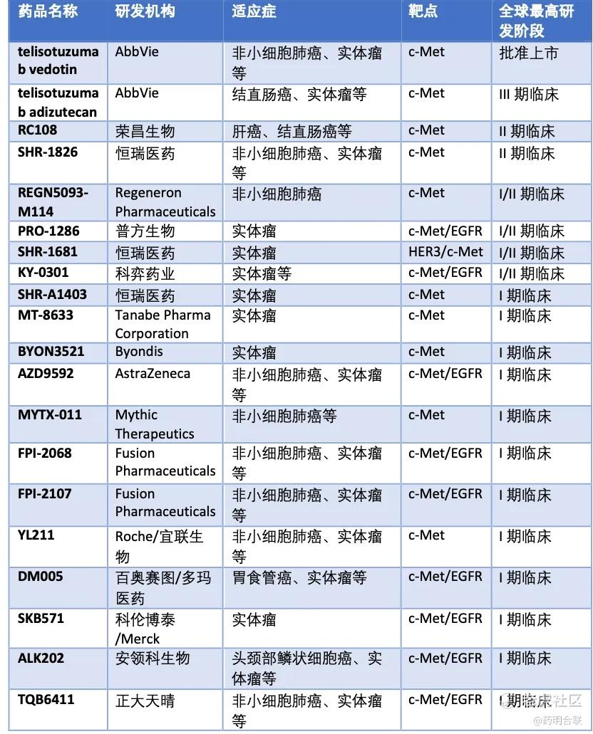 全球c-Met ADC药物研发与合作动态