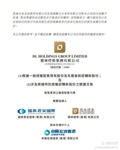 根据公告,德林控股已与卖方及配售代理订立配售及认购协议,拟以每股2.95港元的价格配售201,456,000股现有股份,占公司已发行股本约13.58%。配售价较最后交易日收市价3.35港元折让约11.94%。配售完成后,卖方将按相同价格认购同等数量的新股份,以维持其持股比例。此次配售由德林证券、国泰君安证券(香港)及申万宏源证券(香港)担任联席配售代理,目标投资者为不少于六名独立机构及专业投资者。