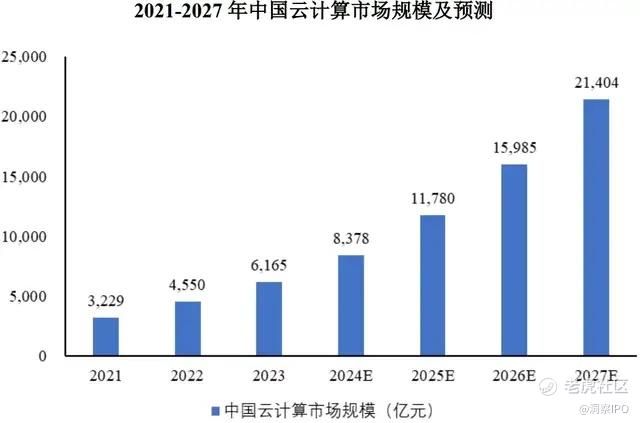 招股明书引用了中国信通院的统计数据:2024年中国云计算市场规模达到约8378亿元,同比增长约35.90%,高于全球增速。随着AI原生带来的云计算技术革新以及大模型规模化应用落地,中国云计算产业发展将迎来新一轮增长曲线,预计到2027年中国云计算市场规模将超过2.1万亿元。