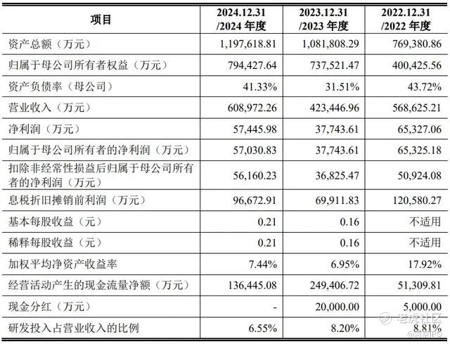 1、创新动力不足:招股说明书显示,报告期内(2022年至2024年),公司研发投入占营业收入的比例分别为8.81%、8.20%和6.55%,三年平均值为7.85%。据上交所发布的科创板公司2024年度经营业绩概览,研发投入占营业收入比例中位数达12.6%,其中107家公司连续3年研发费用率超20%。