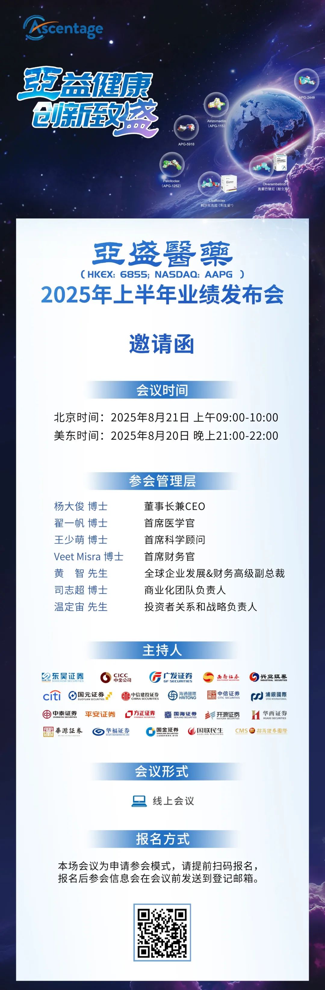 本文仅作为亚盛医药新闻发布,用于披露公司最新业务进展,并非广告用途。文中所涉药物信息仅供医疗卫生专业人士参考,不构成对任何药物的商业推广或对诊疗方案的推荐。如您想了解更多疾病或药物信息,请咨询医疗卫生专业人士。