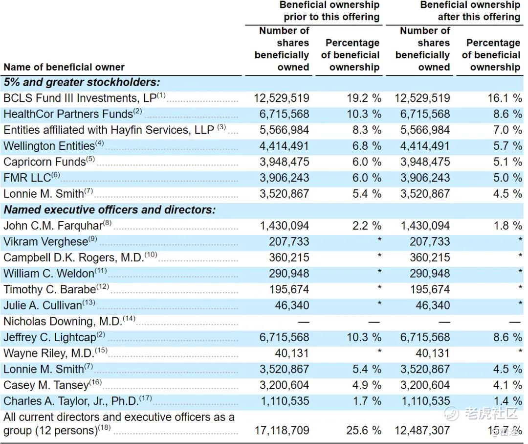 IPO后,BCLS Fund III持股16.1%,HealthCor Partners Funds持股8.6%,Hayfin Services持股7%,Wellington Entities持股5.7%;
