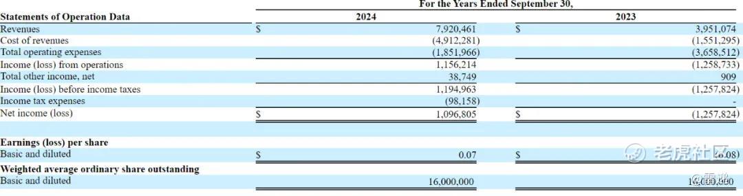 截至2024年9月30日的全年,DarkIris营收为792万美元,上年同期为395万美元;净利为110万美元,上年同期的净利为-126万美元。