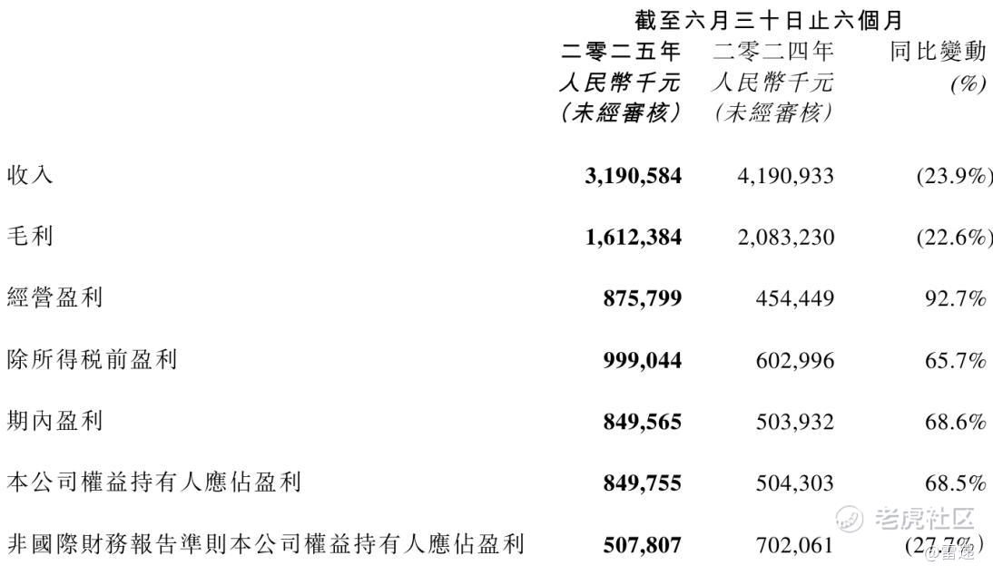 阅文集团2025年上半年运营利润为8.76亿元,较上年同期的4.54亿元增长92.7%;期内利润为8.5亿元,较上年同期的5.04亿元增长68.5%;经调整净利为5.08亿元。