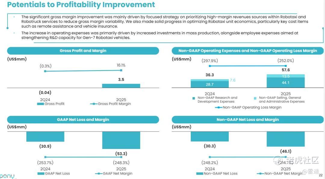 小马智行在2025年第二季度毛利为346万美元,上年同期为运营亏损。小马智行在2025年第二季度毛利率为16.1%。