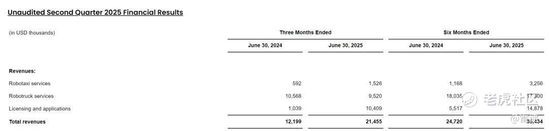 小马智行2025年第二季度来自Robotruck services收入为952万美元;来自许可和申请的收入为1040.9万美元,上年同期为103.9万美元。