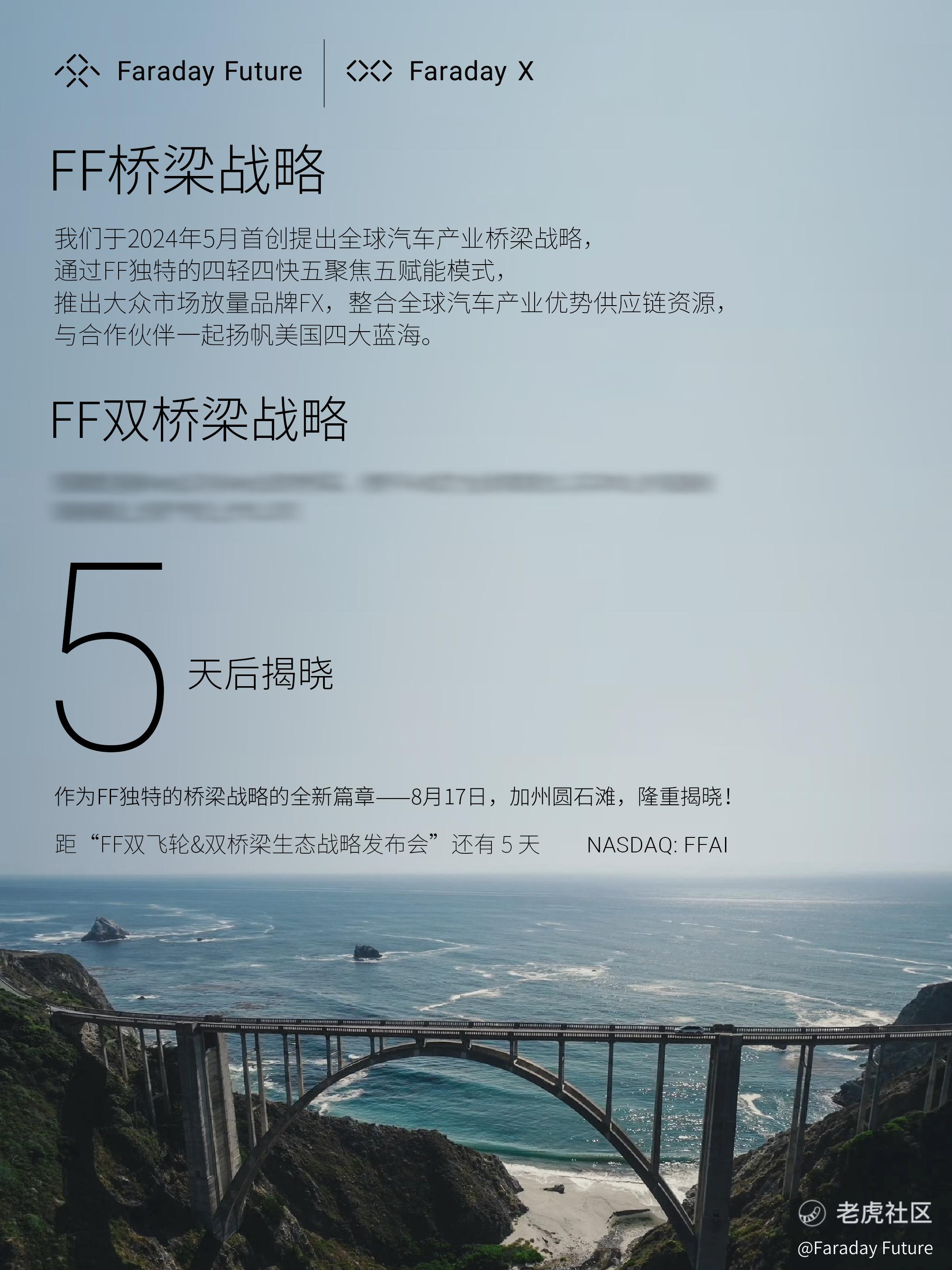 8月17日,我们将揭晓第二座桥梁。这将是一次升维跨越,重新定义FF及整个产业的可能性。