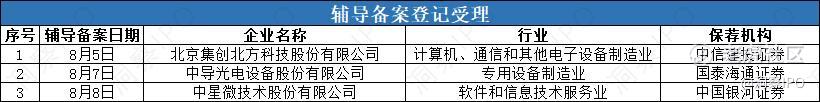 8月4日-8月10日,有3家公司境内(沪深两市)发行上市辅导备案登记获受理。