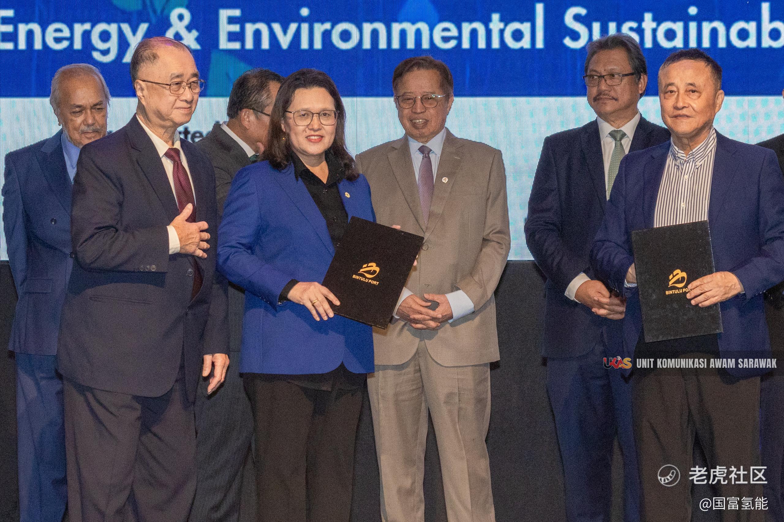 江苏国富氢能装备股份有限公司(以下简称 “国富氢能”)作为这三家签约企业中唯一的中国企业,与 BPHB 正式签署合作意向书,这标志着国富氢能成为首个探索中国企业与砂拉越本地企业合作的大型氢能工程解决方案企业。国富氢能董事长邬品芳与 BPHB 董事 Dato Sri Fong Joo Chung 代表双方签约,砂拉越州总理 Datuk Patinggi Tan Sri(Dr)Abang Abdul Rahman Zohari Tun Datuk Abang Openg 携马来高层官员、企业代表共同现场见证。双方将以此次签约为起点,从10 吨/天液氢示范项目的可行性研究与技术评估入手,推进液氢示范项目及多元港口氢能场景合作,将砂拉越打造绿色能源(液氢)出口基地。