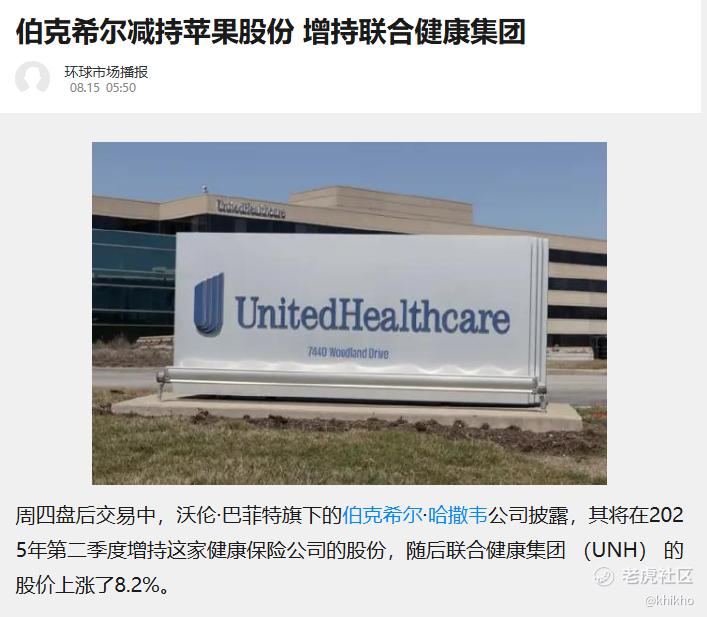 $联合健康(UNH)$ 的重大利好消息啊,巴菲特的伯克希尔·哈撒韦B公司披露对这家陷入困境的医疗保健提供商新增 5039564 股 ,价值约 15.7 亿美元,在伯克希尔的股票组合中排名第18位,仅次于亚马逊和Constellation Brands。联合健康集团股价刷刷刷的就大涨了起来 [财迷]