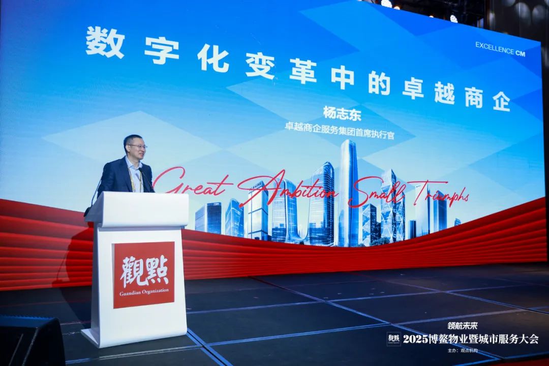 8月14日举行的2025博鳌物业暨城市服务大会上,卓越商企服务首席执行官杨志东受邀发表演讲,演讲的主题是“数字化变革中的卓越商企”,讲述卓越商企服务的数字化转型之道。