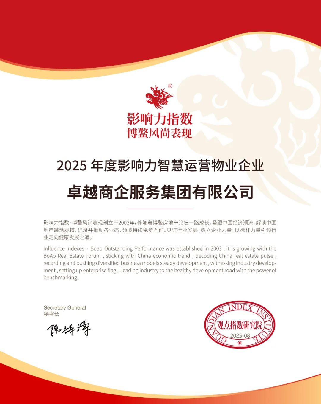 及“2025年度影响力智慧运营物业企业”双项荣誉。