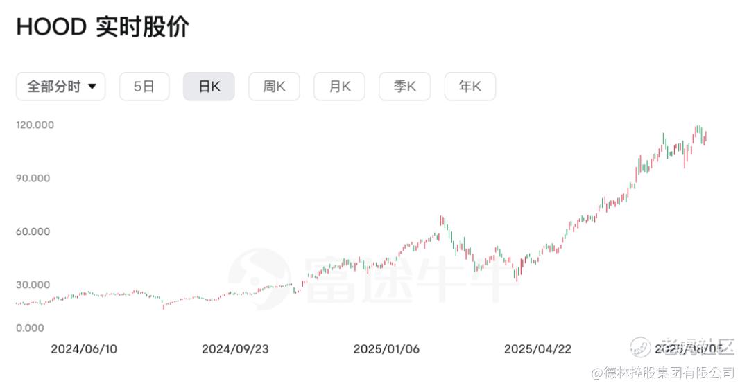 随着Robinhood“吹的牛”一点一点变成现实,公司股价也开始持续增长。这一高潮出现在2025年6月30日,Robinhood当天宣布超过200只在美国上市的股票、ETF都可以通过RWA代币化。Robinhood同时引入了链上同步结算机制,分红、拆股等权益也会自动进入代币持有人账户。Robinhood还宣布,7月7日欧洲用户即可申领SpaceX、OpenAI的私募股权RWA代币。这一消息再次引爆市场,要知道这些是尚未上市的私募股权。