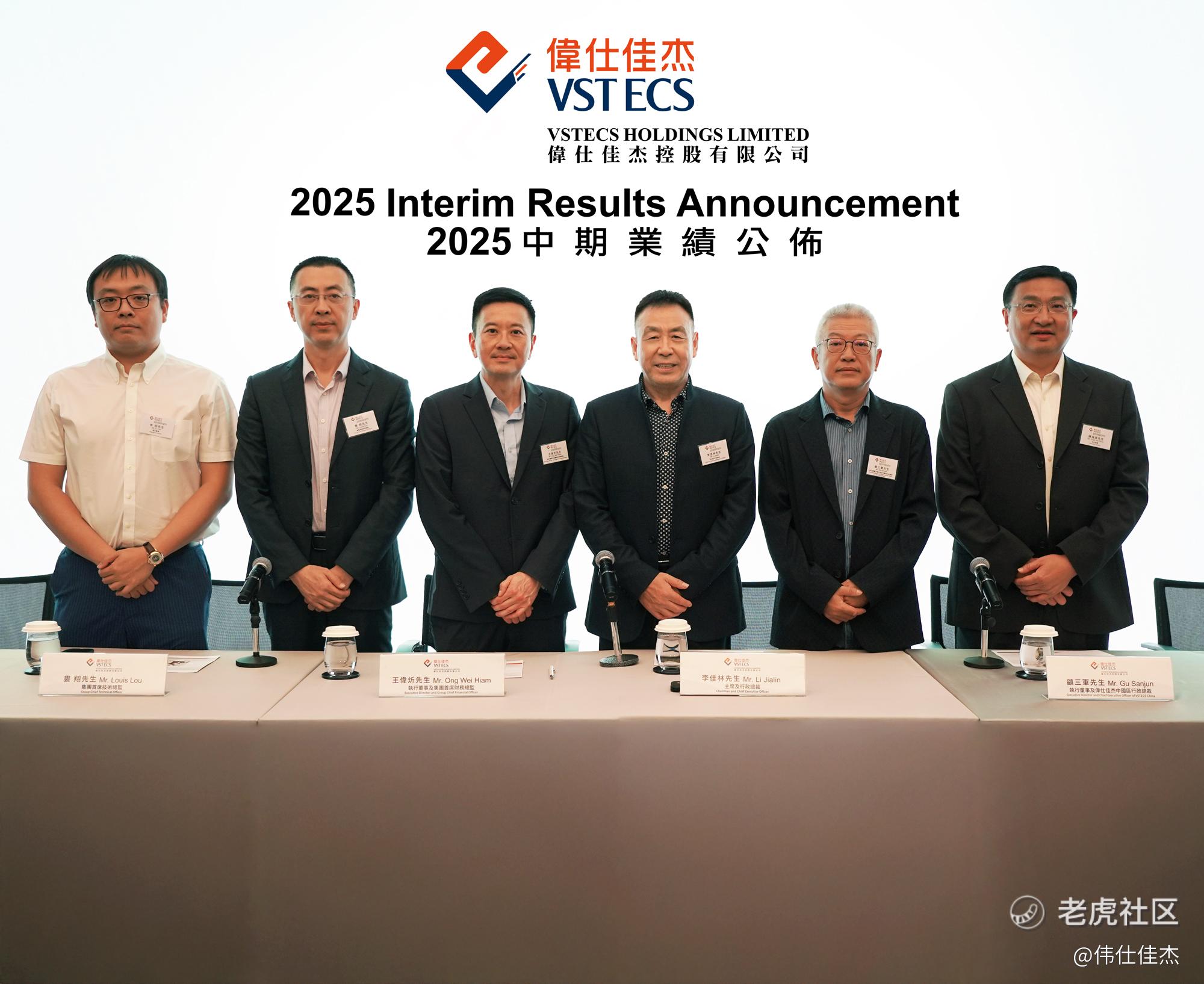 (2025年8月21日-香港)亚太地区领先的专注ICT行业解决方案的科技平台伟仕佳杰控股有限公司(「公司」,股份代号:00856.HK),欣然公布公司及其附属公司(统称「集团」)截至二零二五年六月三十日止六个月(「报告期」)之综合业绩。集团董事局主席及行政总裁李佳林先生(中间)、集团执行董事及集团首席财务总监王伟炘先生(左三)、集团执行董事及伟仕佳杰中国区行政总裁顾三军先生(右二)、集团首席技术总监娄翔先生(左二)、集团执行董事陈海洲先生(右一)、集团执行董事李玥先生(左一)出席业绩发布会。