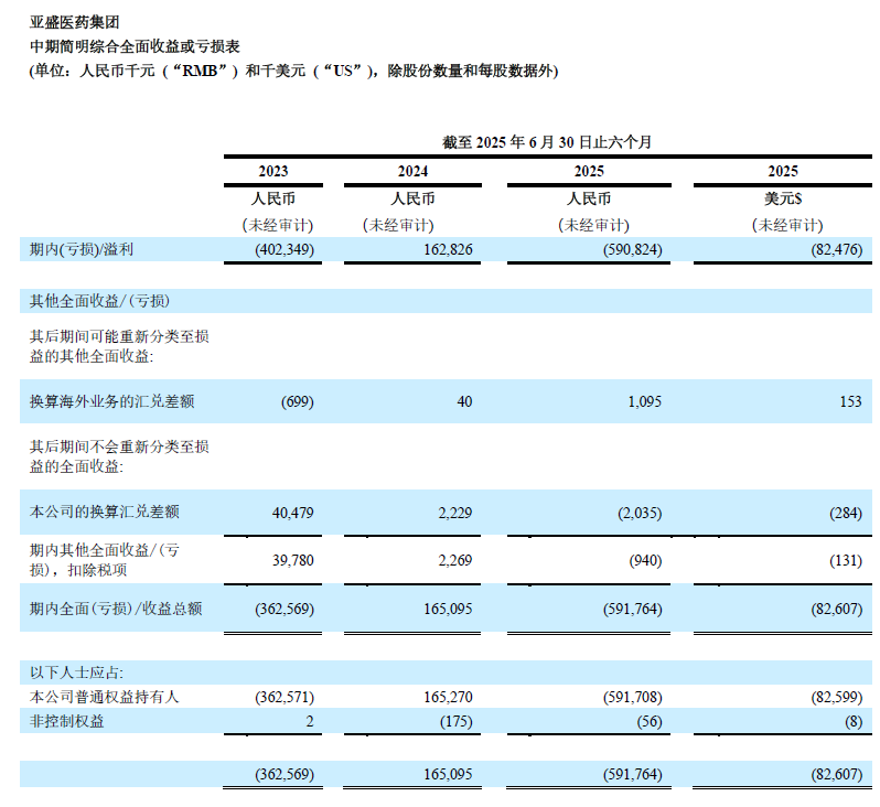 除非另有说明,截至2025年6月30日止6个月,截至20254年6月30日止6个月和截至2025年6月30日人民币对美元的换算分别是按照2025年6月30日,2024年6月28日和2024年12月31日纽约联邦储备银行核证的纽约市中午买入汇率进行的,即1美元兑换7.1636元人民币,1美元兑换 7.2672 元人民币和1美元兑换7.2993元人民币。亚盛医药并未作出任何陈述,表示本新闻稿中提及的人民币或美元金额无论如何都能够或本可以按任何特定汇率兑换成美元或人民币(视情况而定)。