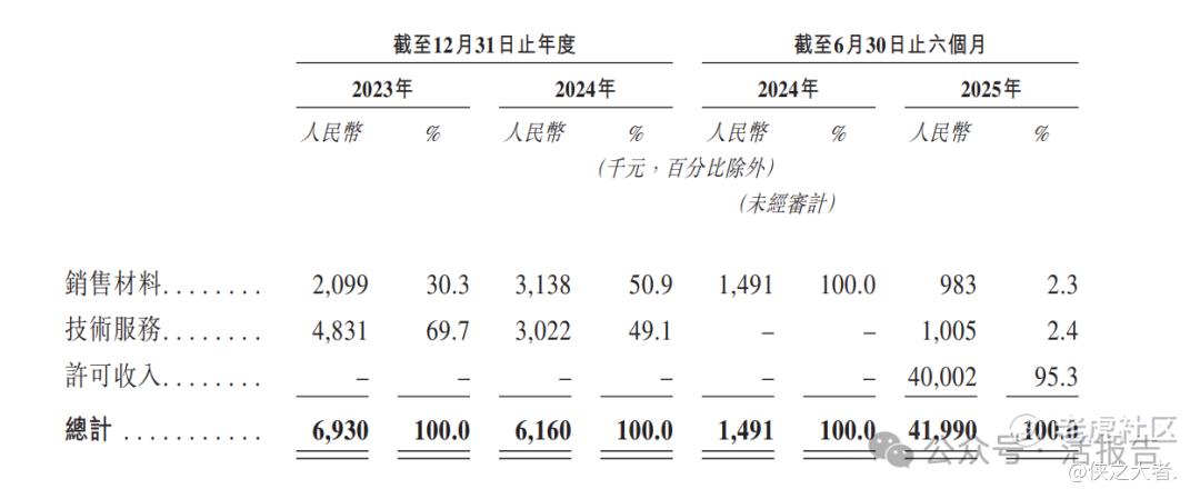 于往绩记录期,公司的收入来自于(i)向下游客户销售材料,包括作为药用辅料的 重组人透明质酸酶、IgG降解酶及抗体以作研发用途,(ii)提供技术服务,主要是公司根据与业务伙伴签订的各份合作协议获得的若干服务费、里程碑付款或其他报酬,及 (iii)根据许可及商业化协议所收取的首付款确认为许可收入。