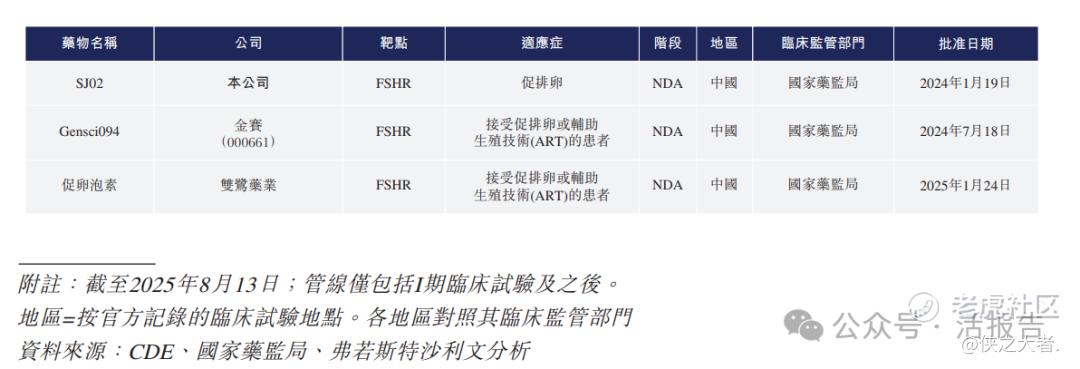 截至最后实际可行日期,中国有七款已上市的短效重组人FSH产品及四款处于临床开发阶段的短效重组人FSH候选药物。在海外市场,有三款短效重组人FSH候选药物已进入临床阶段,七款获批产品已上市。就FSH-CTP而言,全球有三款候选药物已进入临床开发阶段,有一款FSH-CTP产品已上市。公司的SJ02定位为中国临床最先进的FSH-CTP产品。
