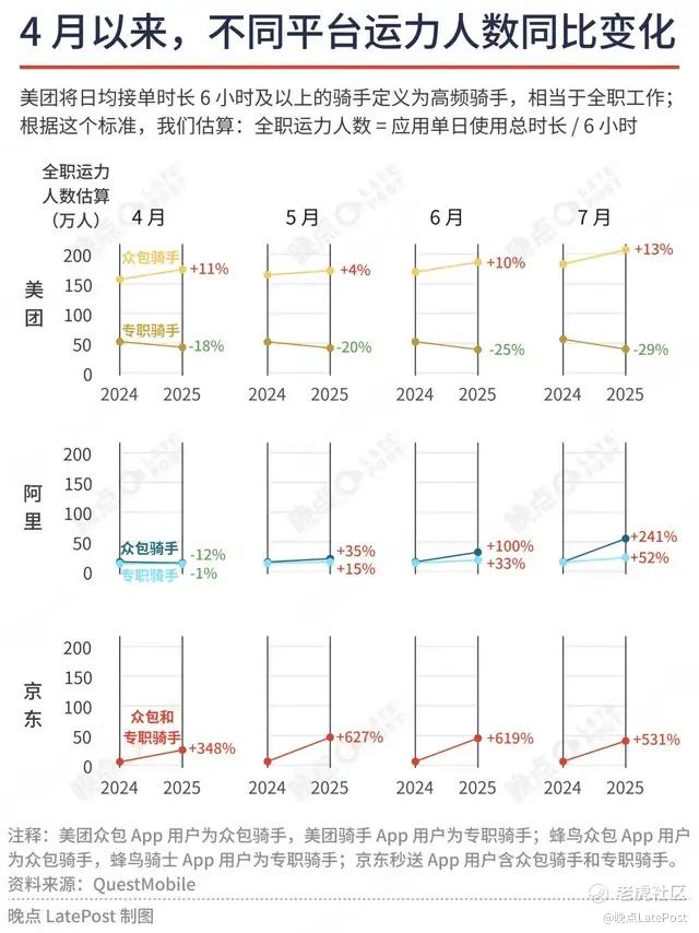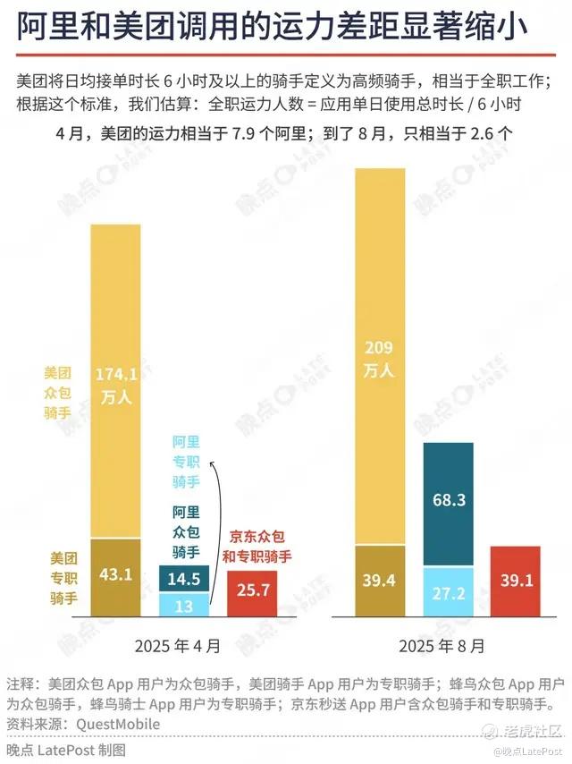 第二:文章中称“大战前美团的骑手规模相当于阿里蜂鸟的近 8 倍,现在这个数字已缩小成 2.6 倍”。我想问大战时美团的运力都不够,阿里单量超美团,阿里是怎么送的?
