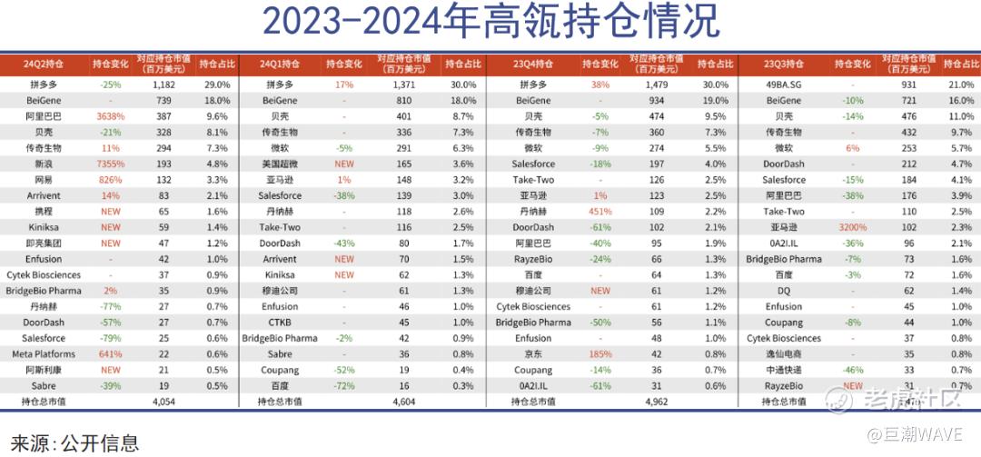 虽有实时调整,但高瓴的投资偏好保持了长期的一致性,像阿里和拼多多这种互联网消费的代表,以及中国创新药的代表百济神州、传奇生物,都愿意长期持有。