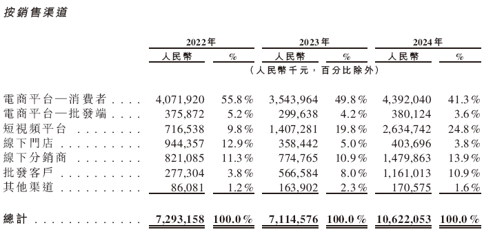 三只松鼠拥有覆盖多元销售渠道的完善销售网络,遍及中国全国各地,公司的销售渠道主要包括:(i)抖音、快手等短视频平台;(ii)天猫、京东及拼多多等电商平台;(iii)线下门店,包括自营店及特许经营店;(iv)批发客户;及(v)分销商。