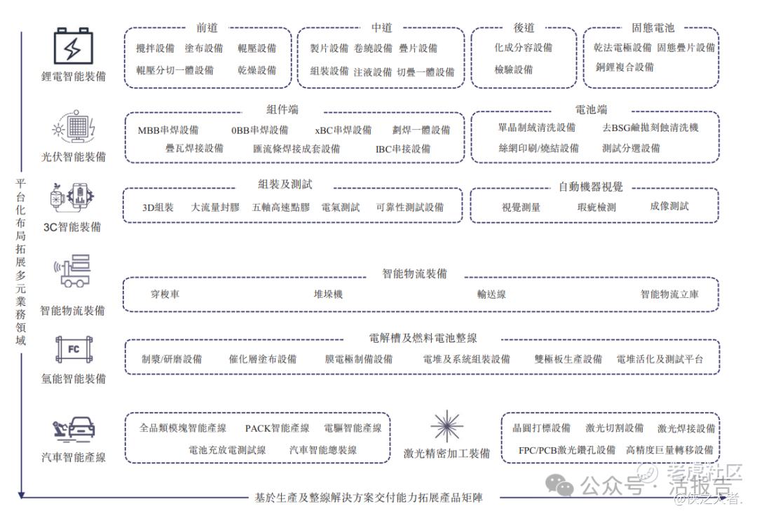 公司是全球领先的高端智能装备平台型企业,为众多新兴、高端制造产业提供极具竞争力的智能制造装备及解决方案,所交付的设备及解决方案广泛分布于全球范围内的锂电池、光伏电池及3C电子产品制造、智能物流、制氢及燃料电池生产、汽车制造及激光精密加工等多元应用领域。