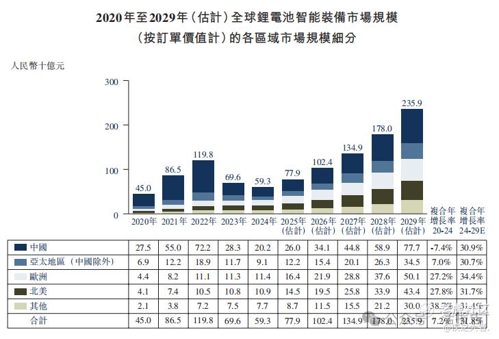 全球锂电池智能装备规模预计将在2029年增至人民币2,359亿元,未来五年的复合年增长率为31.8%。