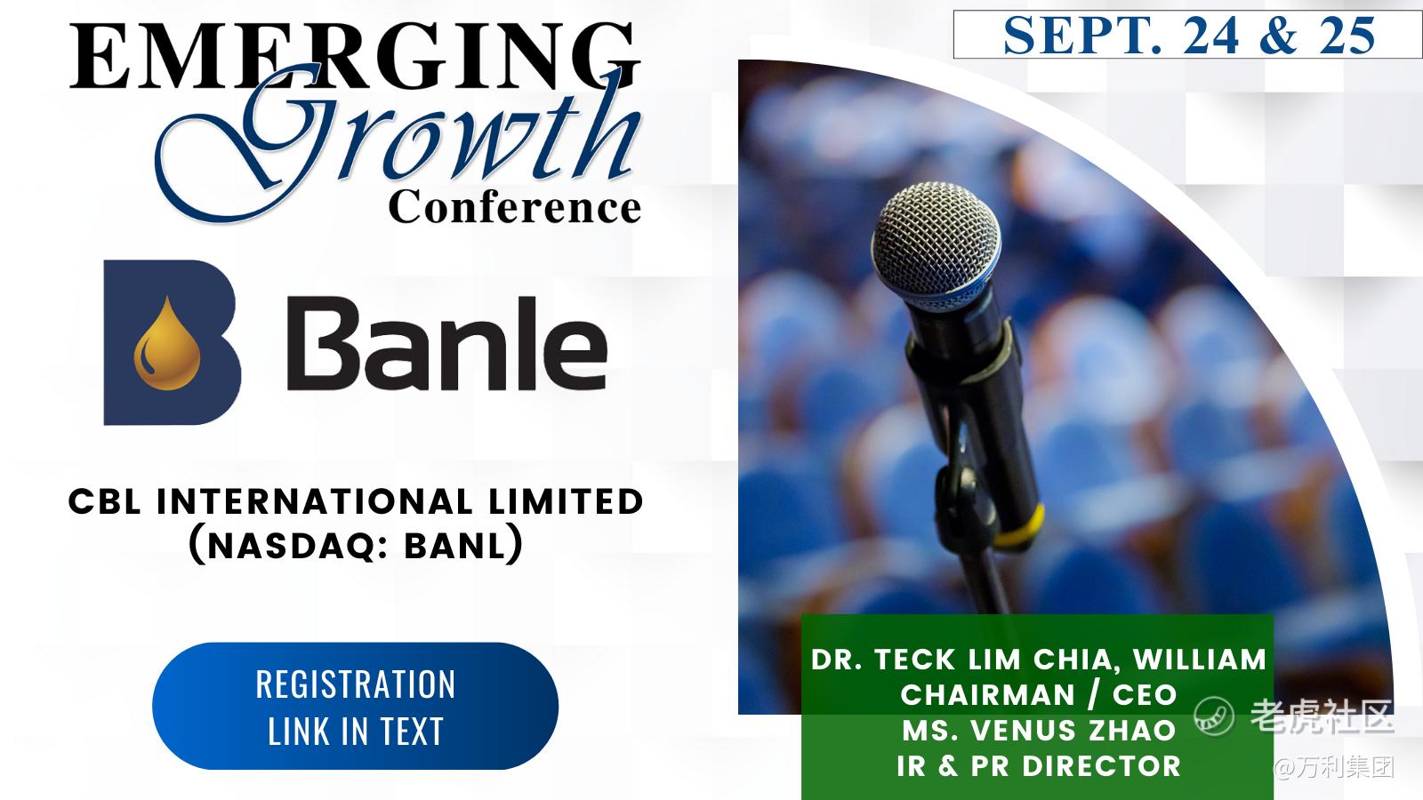 CBL International Limited(纳斯达克股票代码:BANL)——万利集团的上市平台,将于2025年9月24日受邀出席Emerging Growth投资者会议。