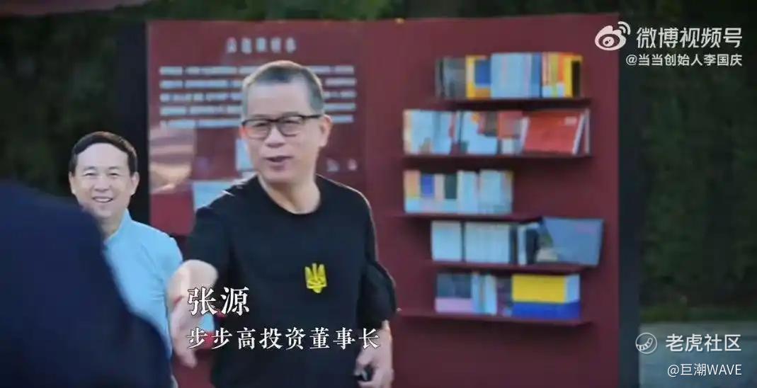 但其中一位大佬,却因争议性穿着迅速成为网络热议的焦点。步步高投资董事长张源当天身着一件黑色T恤,但眼尖的网友指出,他衣服上的三叉戟图案神似乌克兰国徽,有部分网友认为,这暗示了其某种政治倾向。