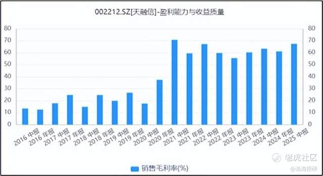 盈利能力来看,最近几年,销售毛利率稳定维持60%-70%之间,业务盈利能力较强。