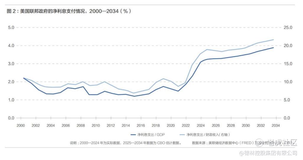 利率被美联储人为压低,美国的国债利息支出会得到控制,这将在无形中为国债发行创造条件。当美国的债务规模持续扩大时,这会直接打击全球对美元的信心。