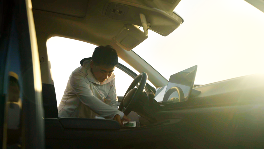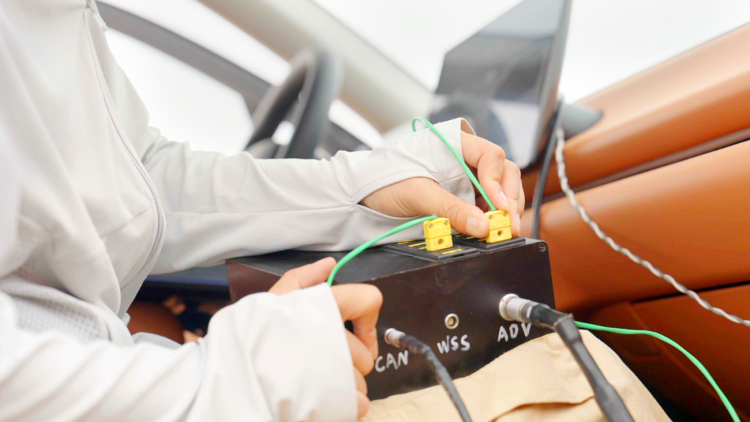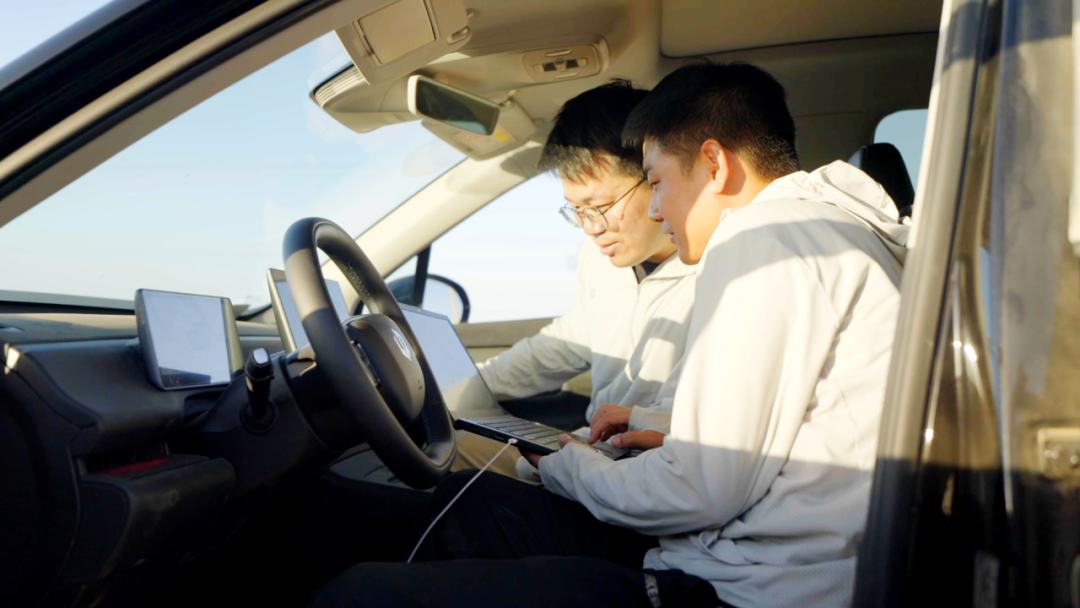 从第一次跟着师父来吐鲁番时对戈壁滩的新奇,到如今全身心扑在车辆标定与试验数据上,何工的成长藏在每一次暴晒下的坚守里。车辆要在烈日下接受高温炙烤以测试极限性能,他便跟着在户外记录数据、排查问题,哪怕座舱内温度热到挥汗如雨,也得守着设备完成每一项工况测试。
