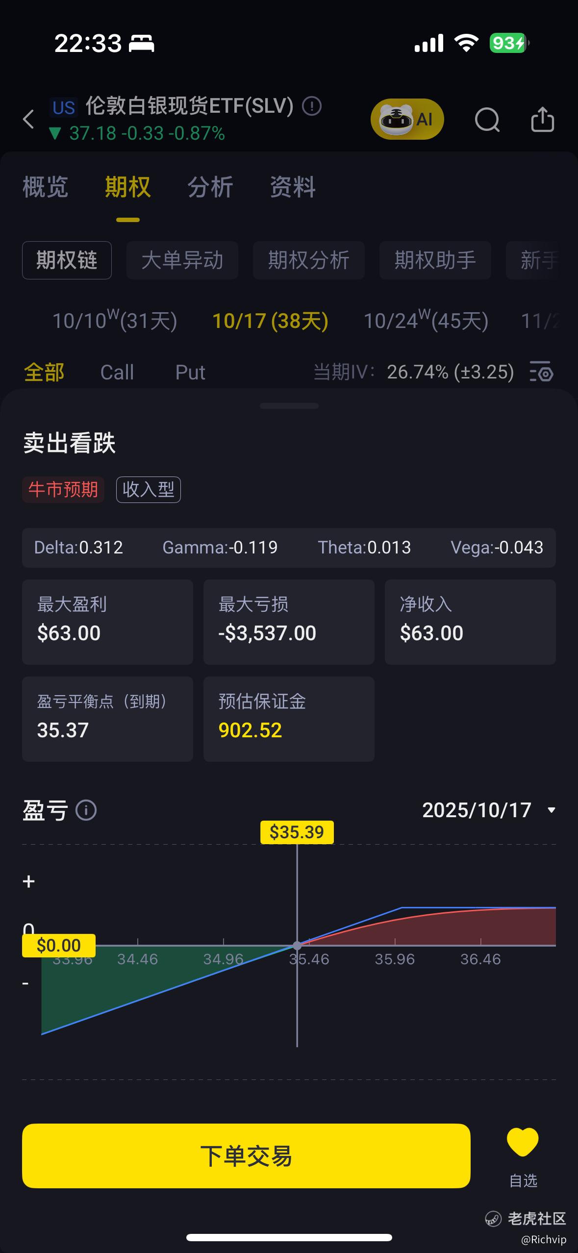 策略:sell SLV 1017 36 put