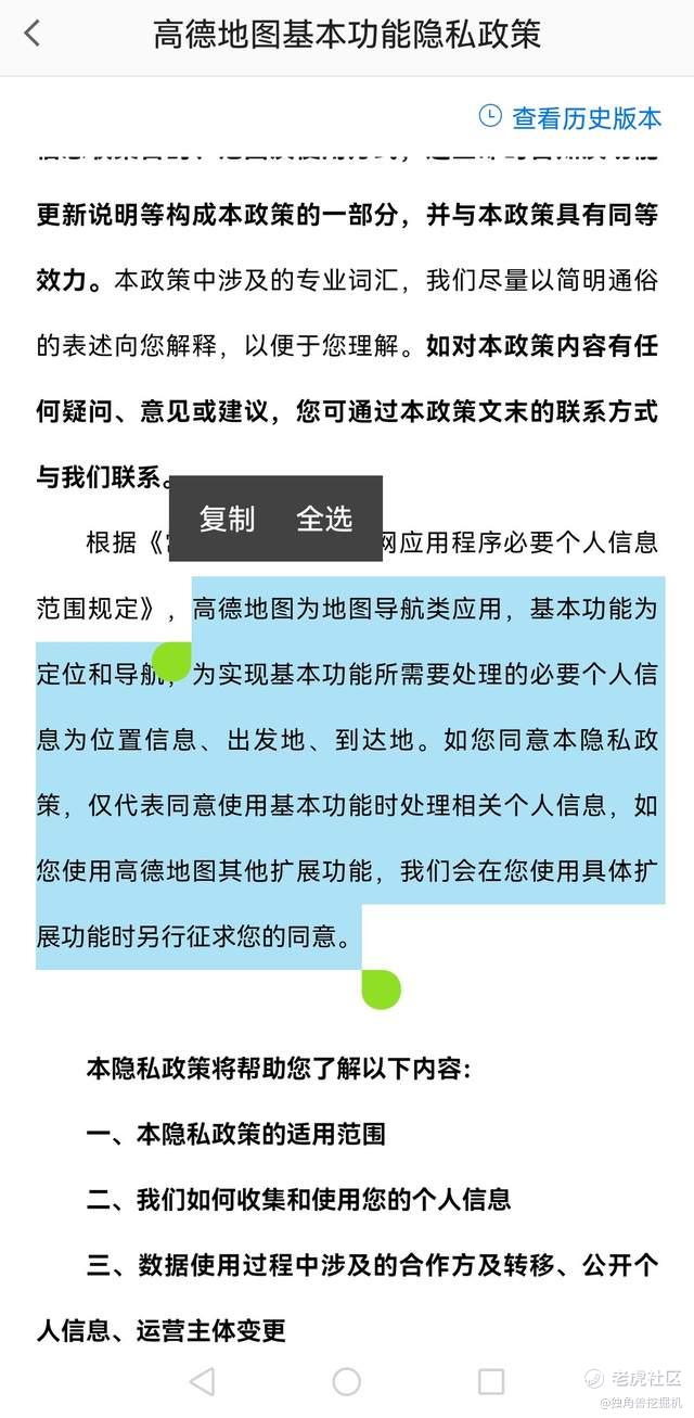 简单来说,高德原先的隐私条款里基本都是跟导航、用户出行相关的内容,如今高德扫街榜完全是另外一个维度的产品,原先的隐私条款是否还适配高德扫街榜这个新产品呢?