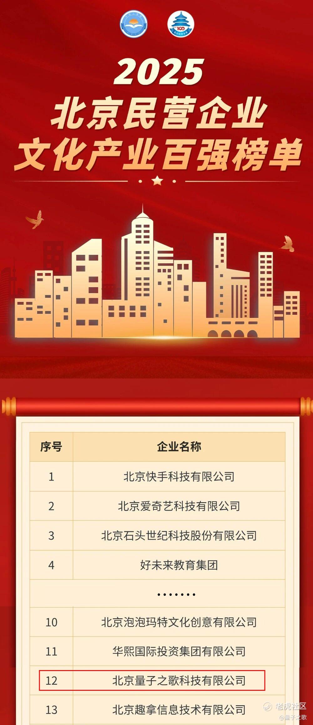 此次跻身“北京民营企业文化产业百强”第12位,不仅是对量子之歌战略转型和创新实践的认可,也映射出北京文化创意产业的勃勃生机。