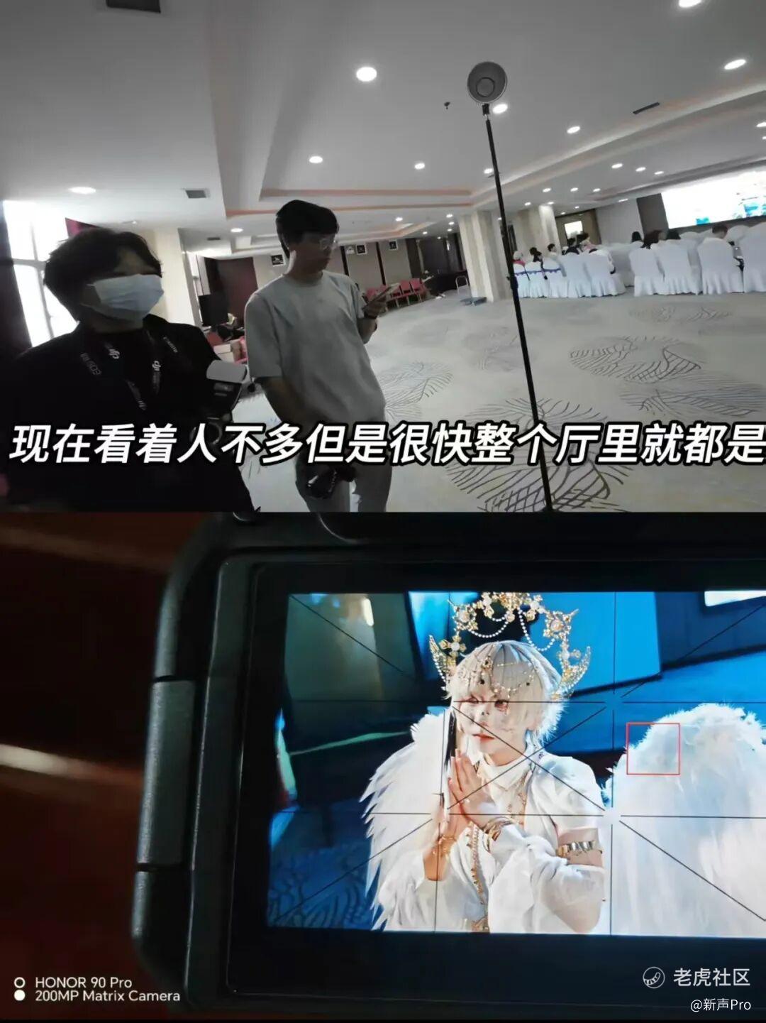 时间来到周六,漫展选址在一家酒店的宴会厅里,一眼看得到头。七恒千早早带着相机和灯架找了个空地摆开阵势,旁边还有两个「同行」,都是中学生,场照拍摄服务收费仅5-10元一张。