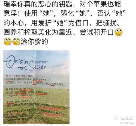 比如有人骂瑞幸你真的恶心的要死,对苹果也能意淫,使用“她”,弱化“她”,否认她的本心,用爱护她为借口,把骚扰、圈养和榨取美化为靠近、尝试和开口,滚你X的……