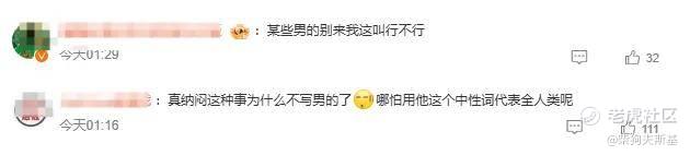 以及:“真纳闷这种事为什么不写男的了,哪怕用他这个中性词代表全人类呢”