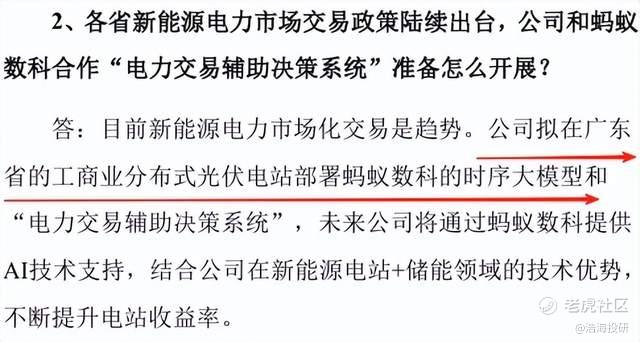 目前新能源电力市场化交易是趋势。能辉科技拟在广东省的工商业分布式光伏电站部署蚂蚁数科的时序大模型和“电力交易辅助决策系统”,未来公司将通过蚂蚁数科提供AI技术支持,结合公司在新能源电站+储能领域的技术优势,不断提升电站收益率。
