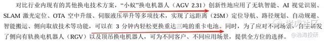 对比行业内现有的其他换电技术方案,“小蚁”换电机器人创新性地应用了无轨智能、AI视觉识别、SLAM激光定位、OTA空中升级、伺服液压举升等多项技术,实现了远距离(25M)定位导航、路径规划、自动规避、智能搬运、侧向取放技术等功能,可以在3分钟内轻松更换重达3吨的重卡电池。