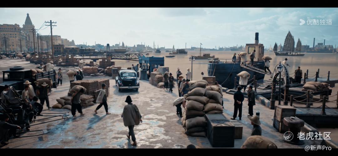然而,虚拟拍摄技术的应用改变了这一流程。项目虚拍负责人冲亚与团队反复比对历史资料,从万国建筑群的砖缝纹理,到黄浦江面的波光动态,甚至码头边货船的木质纹路,都一一考据建模;连江面上的帆船、远景的工厂轮廓,都贴合1920年代的城市风貌,避免出现错位的时代元素。