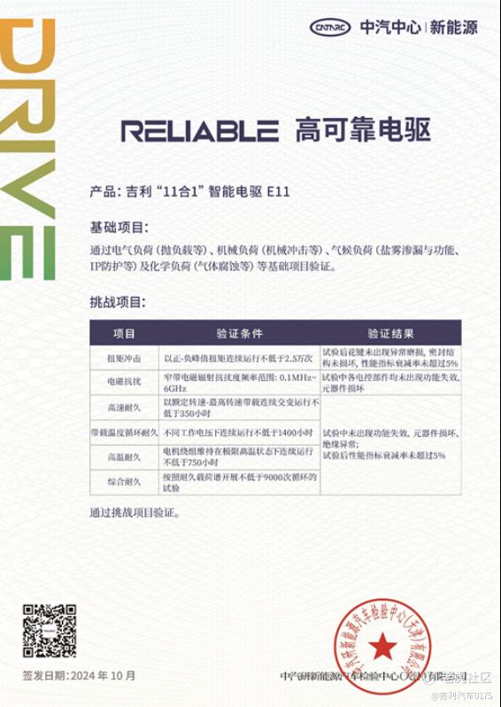 吉利星愿搭载行业首款11合1智能电驱,在功能高度集成的同时,还拥有同级领先的89.2%电驱效率,实现了同级最小的66L体积,将节省的空间以超大后备箱的形式还给了用户。通过了3000小时的台架耐久和200万公里的真实路试,星愿电驱完成了浸水工作、高温耐久、电磁抗扰、扭矩冲击、机械冲击等7大高难度挑战,获得了中汽研《高可靠电驱》的认证。