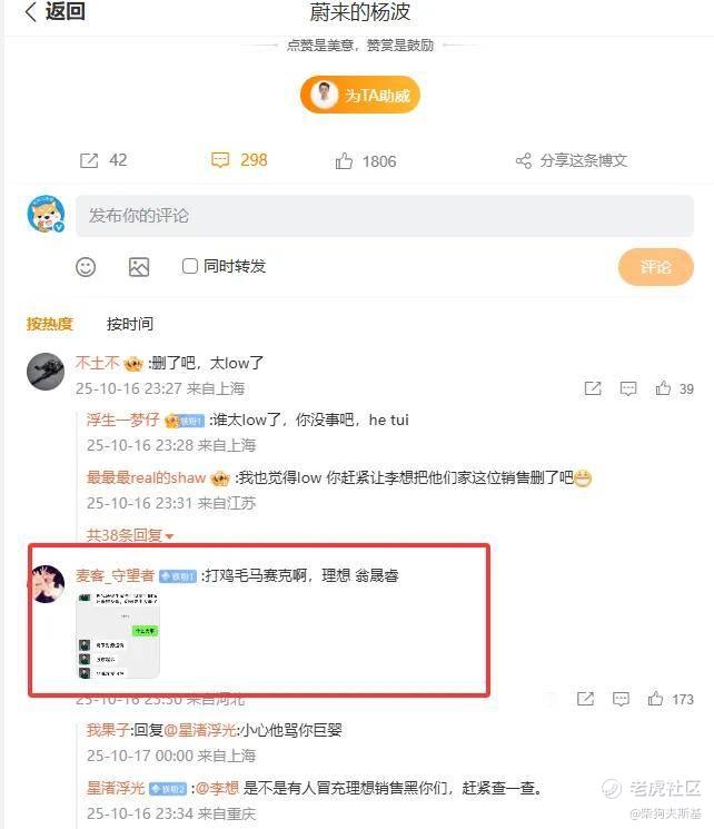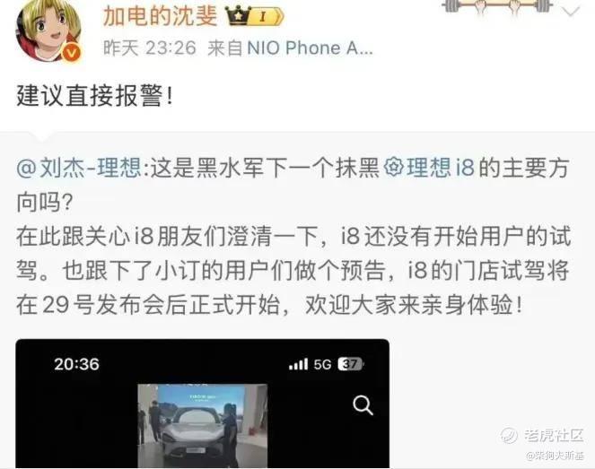 而这条评论是踩理想,捧蔚来,让不少人直指和蔚来有关,很快沈斐下场自证清白,建议李想副总裁直接报警。