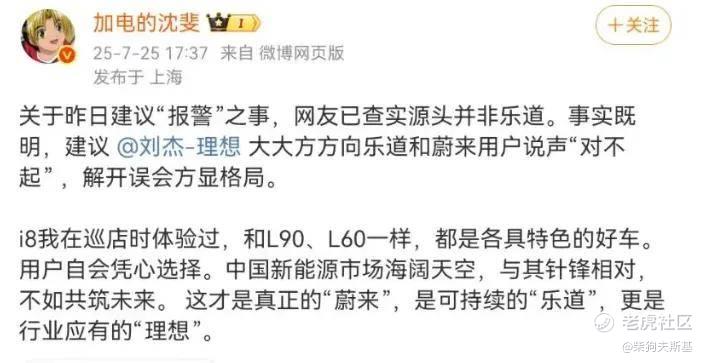 然而,李想高管并没有理会沈斐,但蔚来也不想戴这顶突然砸在头上的帽子,沈斐连续发文自证,表示网友查实源头并非乐道,而是理想的内测用户,并艾特理想刘姐道歉。