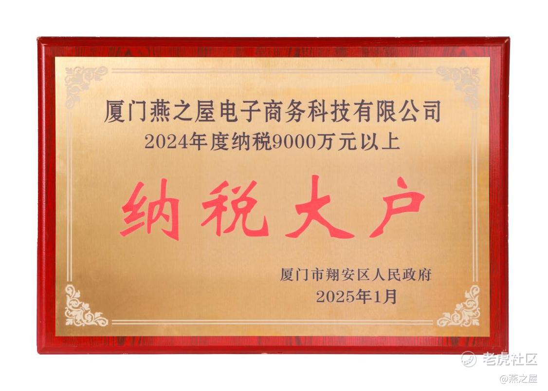 近日,燕之屋凭借其在担当社会责任及税收贡献方面的突出表现,「厦门燕之屋电子商务有限公司」获厦门火炬高技术产业开发区管理委员会授予的“2024年度纳税大户企业”称号,「厦门燕之屋科技开发有限公司」获颁厦门市思明区“2024年度纳税超1000万元纳税特大户”。这两项荣誉不仅体现了企业在经济效益上的显著成就,更凸显了其恪守诚信纳税原则、积极履行社会责任的担当精神,进一步巩固了燕之屋在行业内的典范地位。