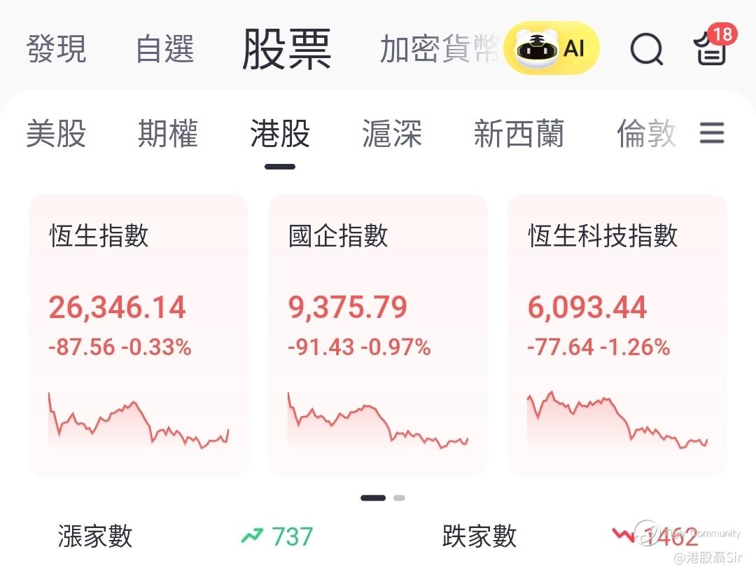 于美股开市首一个半小时,香港时间截至晚上11:00,夜期$恒生指数主连 2302(HSImain)$ 一度高见26,470点 (晚上10:32),上升115点,当时美股道指$道琼斯(.DJI)$ 升近275点。之后随著美股升幅收窄,夜期也跟随,不过实则在晚上11:00,道指仍升近230点,夜期却一直没有冲高至26,500点之上。